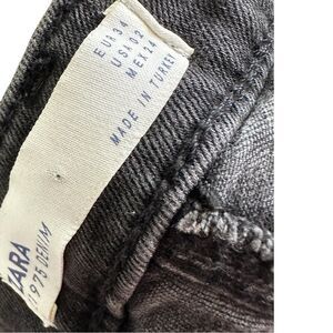 Zara 1975 denim black ripped jeans faux snakeskin side accents size 2