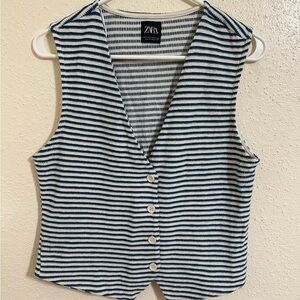 Zara 2 Piece Striped Vest And Wide Leg Pants Co-ord Set