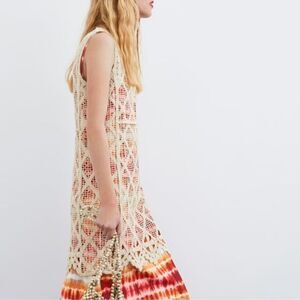 2 piece set with Beige crochet dress (that can be used as a coverup or can be layered upon any cute dress on inside) and inner multicolor sundress .