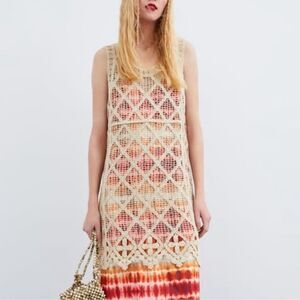 Zara 2 piece crochet dress with multicolor inner dress