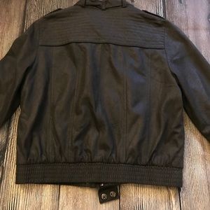 Super cute brown 3/4 sleeve lightweight jacket. Buckle detail at the collar and on bottom of both sleeves.