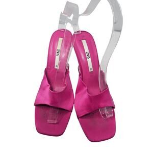 Zara 39 Hot Pink Heel Sandal Square Toe Glam Cocktail Club Clear Acrylic Heel