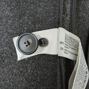 Notched lapel collar and long sleeves. No inner lining. Welt pockets at the hip. Hem with vent at center back. Front button closure. Single breasted.
