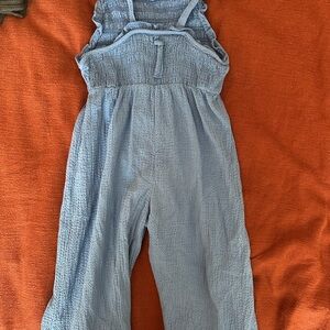 Gently used, worn once; This blue jumpsuit from Zara features a relaxed wide-leg culotte cut, offering a casual and comfortable fit. Made from lightweight denim, it provides a classic yet modern look perfect for any casual outing. The simple design ensures versatility and ease of wear.
