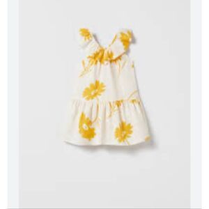 Zara 5-6 year girls cream yellow vacation linen blend dress cream boho flutter s