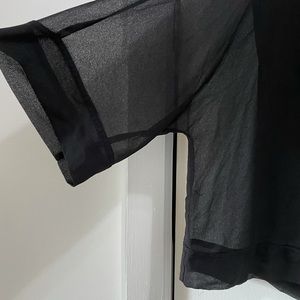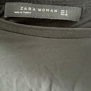 Black Zara top with attached inner and outer layer. Outer layer is sheer and inner layer is a stretchy tank top. It’s a beautiful piece that you can wear with a pair of jeans.