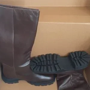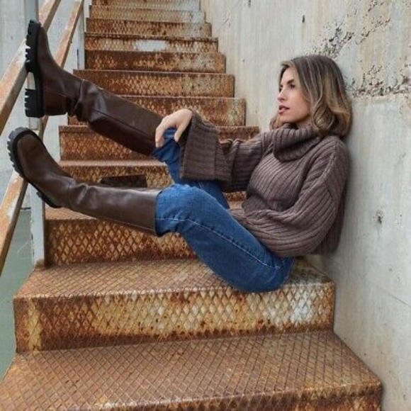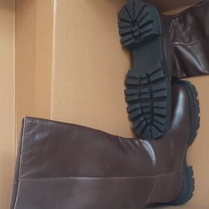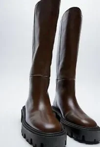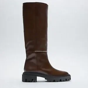 Zara Women Flat Knee High Leather Boots Brown. Brand new with tags!