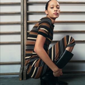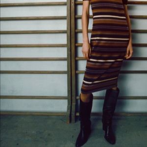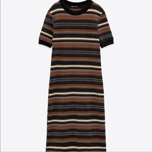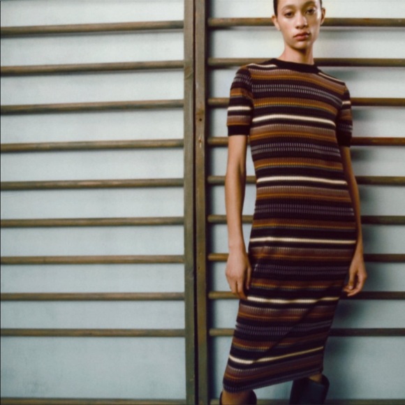 Zara jacquard stripped midi dress Little stretch Mid thick material