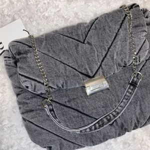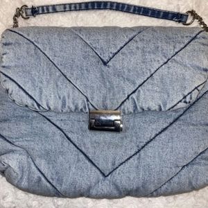 Quilted denim shoulder bag in Acid wash black denim and Acid wash