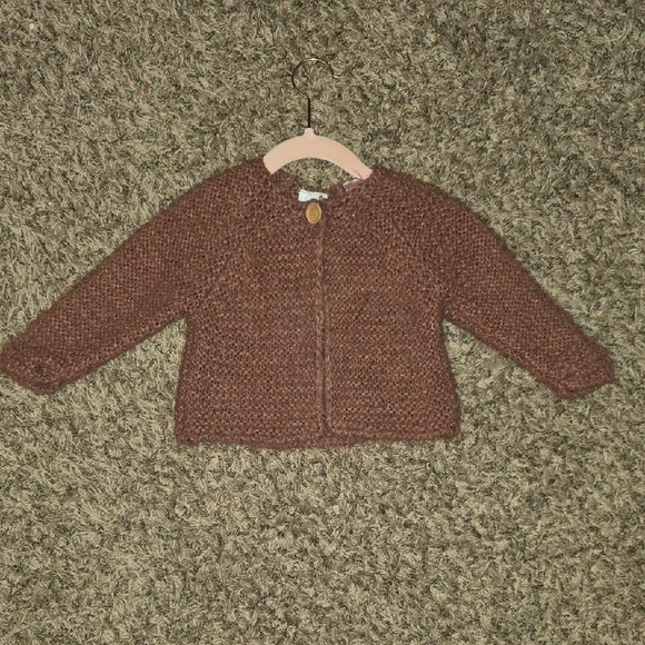 Zara Kids knit cardigan. I loved the dusky pink color and soft texture. Worn a few times, but marked as good condition due to the delicate material. There is some pilling.