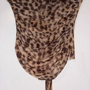 Chic leopard print draped top from Zara featuring a flattering ruched silhouette and an elegant scarf-style neck tie detail that can be styled into a bow for a feminine, elevated finish. This piece gives a sleek, fashion-forward look and creates a beautiful hourglass effect. The draped front adds softness and shape, while the tie detail makes it feel more unique and styled than a basic top. Perfect for: • date nights • dinners • girls’ night out • vacation looks • styling with leather pants, denim, or a mini skirt Details • Brand: Zara • Size: Medium • Leopard print • Ruched draped front • Scarf tie / bow neck detail • Soft stretch mesh feel Condition Pre-owned and still in beautiful condition. Minor signs of wear consistent with normal use. ✨ Please review photos carefully as they are part of the description. You could also add this one-liner if you want it to sound even more expensive: “Designer-inspired silhouette with a dramatic drape and soft bow detail.”