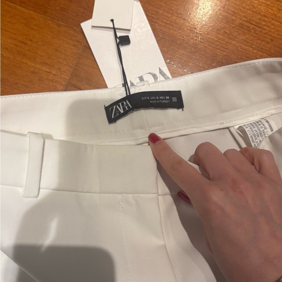 Elegant cream dress pants from Zara. Clean lines with a tailored silhouette. Subtle welt pocket detail. Smooth fabric for a polished look.