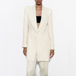 Zara 87% Linen Metallic Thread Co-Ord SET Blazer Jacket Pants New