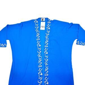 Zara Abaya Gold Arabic Calligraphy Embroidery Size Small Blue New with Tag