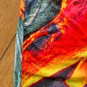T-shirt made of 60% cotton. Front and back contrasting abstract print that is part of the fabric, not printed on top so it will never wash away or chip away.