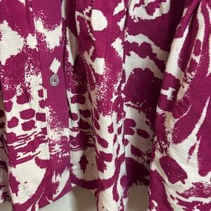 Zara Abstract Magenta Ivory Button Front Boho tiered oversized shirt dress M