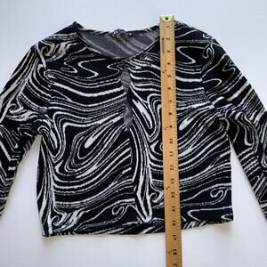 Zara Abstract Print Crop Top Size L Black White Long Sleeve Keyhole Cutout Y2k