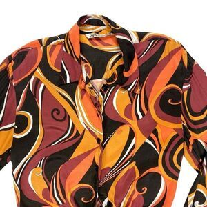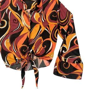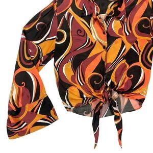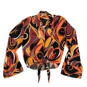 - Description: Zara Abstract Printed Tie Front Crop Button Up Blouse XS Gypsy Boho Colorful Top