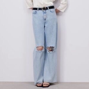 Zara Acid Light Wash Ripped Knee Wide Leg Baggy Jeans in US 10