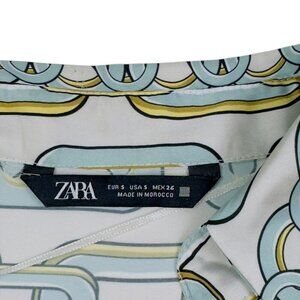 Zara All Over Chain Print Flowy Lightweight V-Neck Button Down Women's Size S