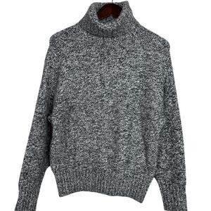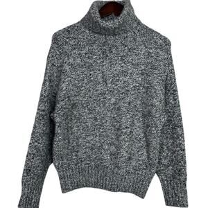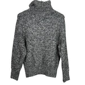 Zara Alpaca Wool Long Sleeve High Turtleneck Speckled Sweater Ribbed Hem S Grey Black