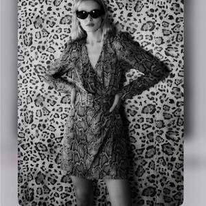 Zara Animal Print Belted SATIN EFFECT PRINT DRESS Size Medium