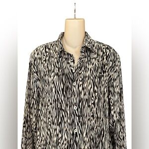 ANIMAL PRINT SHIRT satin effect Flowy shirt with V - neck lapel collar and long sleeves with a super light, and soft fabric. . Front gold button closure in color Gold. I am completely sure that you will be fascinated. . COLOR: Black / White OUTER SHELL 100 % polyester