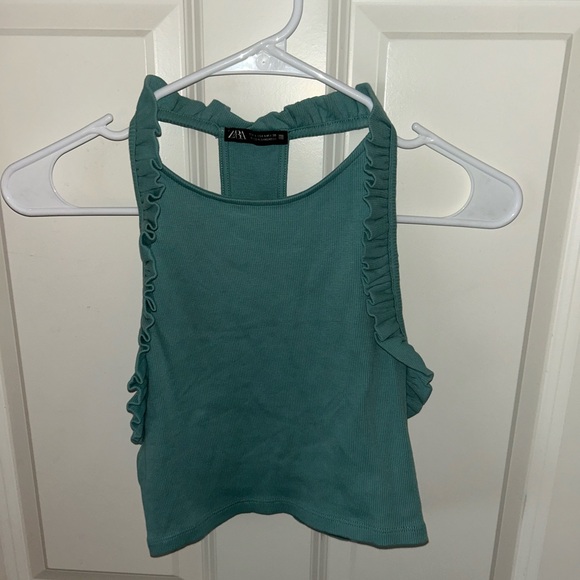 Chic Zara tank with ruffle details. Soft and stylish.