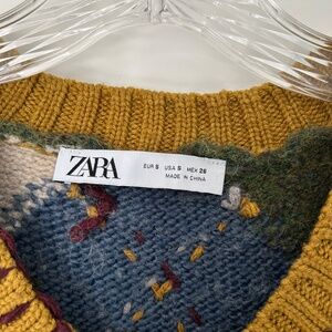 Zara Argyle sweater vest women's size Small, Boho, v-neck