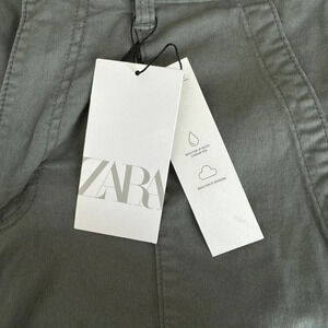 Zara Army Green High Waist Tapered Leg Stretch Cotton Cargo Pants Size 31