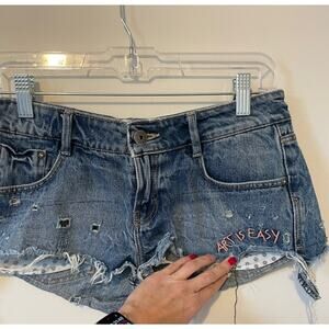 Zara Art is Easy Cut Off Distressed Denim Shorts Blue Pink Size 4