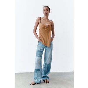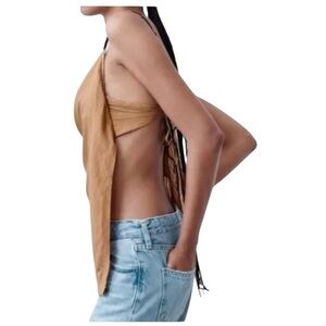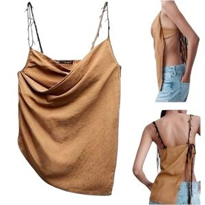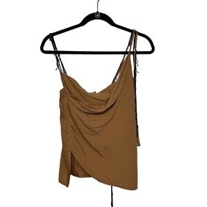 Zara Asymmetric Beaded Tan Brown Wrap Top Size: XS