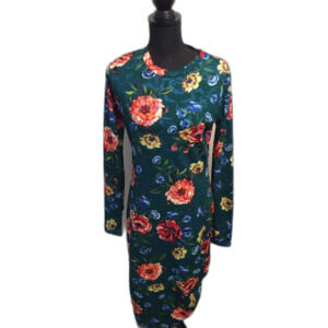 Zara Asymmetrical Floral Dress Bodycon Midi Green Large L