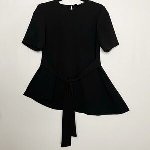 Zara Asymmetrical Tie Front Flattering Minimalist Contemporary Blouse Top NEW