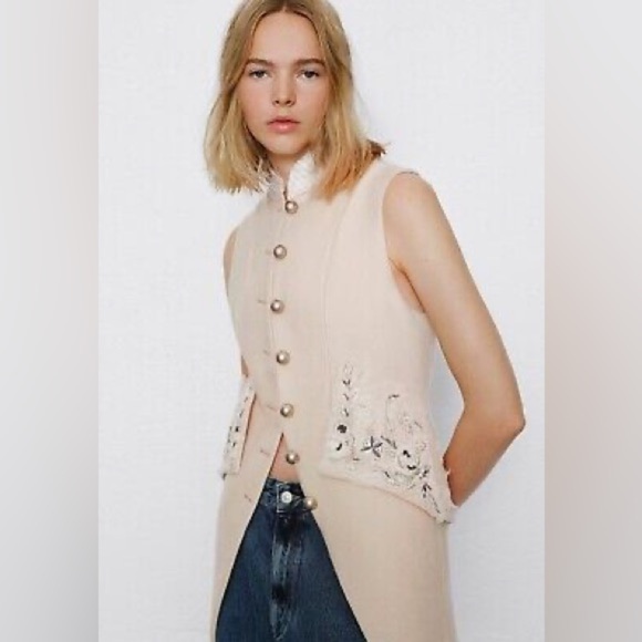 Zara ⚜️Atelier, RARE Wool Embroidered Tailcoat Vest S Cream. Limited Edition NWT