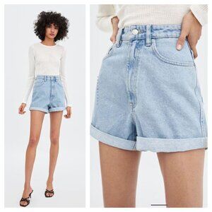Zara Authentic Denim Mom Fit Bermuda Short High Waist Light Wash Blue Women's 00