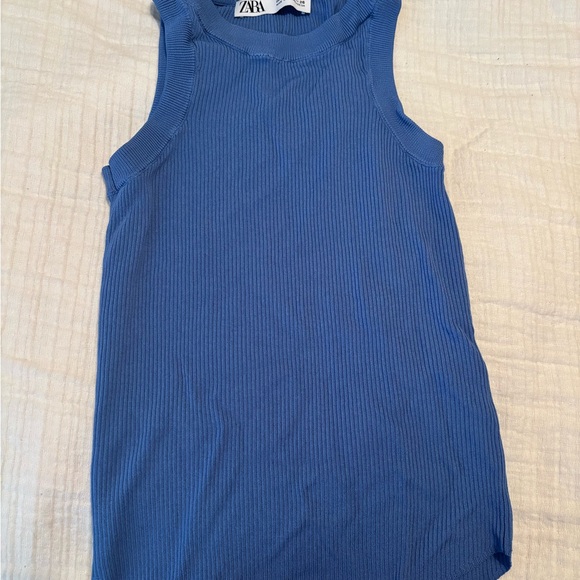 Elegant azure ribbed knit top from Zara. Ideal for everyday style.