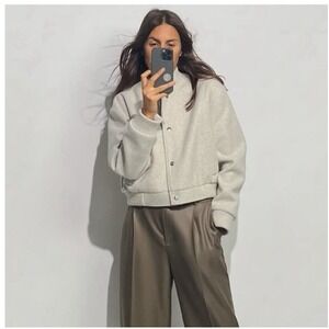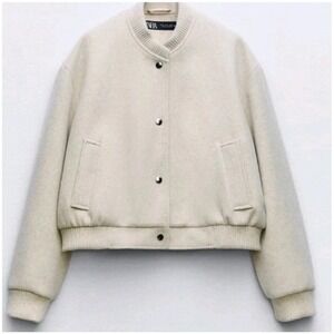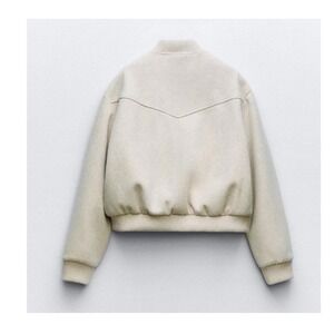 Zara BLOGGER FAVORITE Soft Cropped Bomber Jacket Cream XL