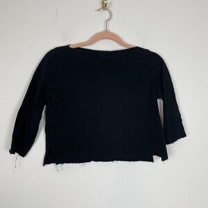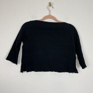 Zara BW Boat Neck Cropped Long Sleeve Top Raw Hem 3/4 Sleeve Size Small