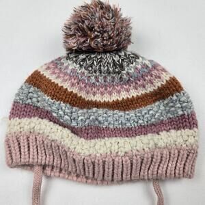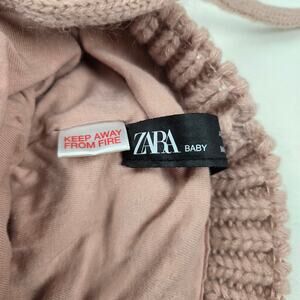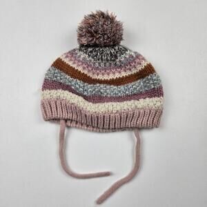 Zara Baby Accessories Knitted Pom Pom Hat Beanie Cap Tie Neck Neutral Colors