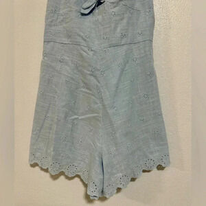 Zara Baby Blue Embroidered Shorts Romper w/ Spaghetti Straps & Side Zip NWT M