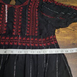 Zara Baby Doll Mini Dress S Chiffon Floral Embroidered Silver Metallic Detail