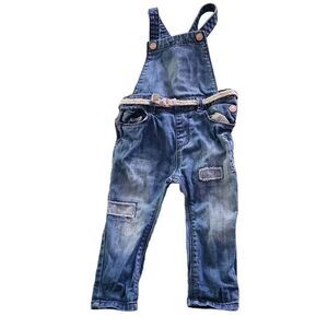 Zara BabyGirl Denim Overalls - Distressed - Blue- Size 9-12 Months