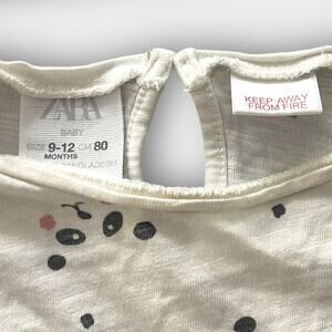 This gently loved Zara baby long-sleeve tee features a sweet “Te Quiero Mamá” message, making it perfect for little ones to show their love. Designed with a soft, lightweight fabric and a playful speckled pattern, it’s a cozy and adorable everyday piece.
