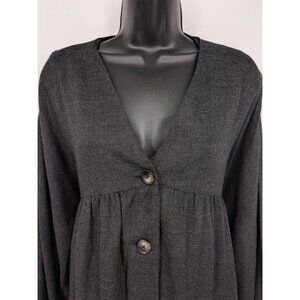 Zara Babydoll Mini Dress Women Size L Button Up Balloon Sleeve Goth Office Y2K
