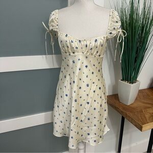 Zara Babydoll Mini Floral Dress SZ Medium Cream Blue Cottagecore GUC READ
