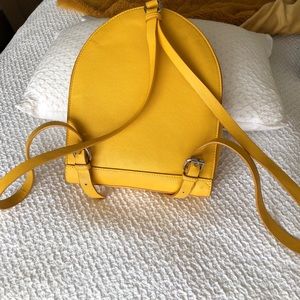 Dandelion yellow backpack originally from Zara! Very bright and fun, has sliver zippers, and is about 9.5” wide and 11.5” tall