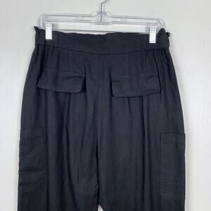 Zara Baggy Linen Trouser Cargo Pant Black Tapered Leg Pockets Cuffed Size 6