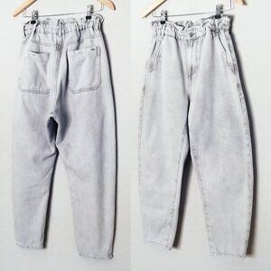 Zara Baggy Paperbag Elastic High Waist Light Grey Gray Denim Jeans Size 6 Ankle