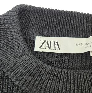Zara Baloon Puff Sleeve Ribbed Crewneck Jet Black Sweater. Size S.